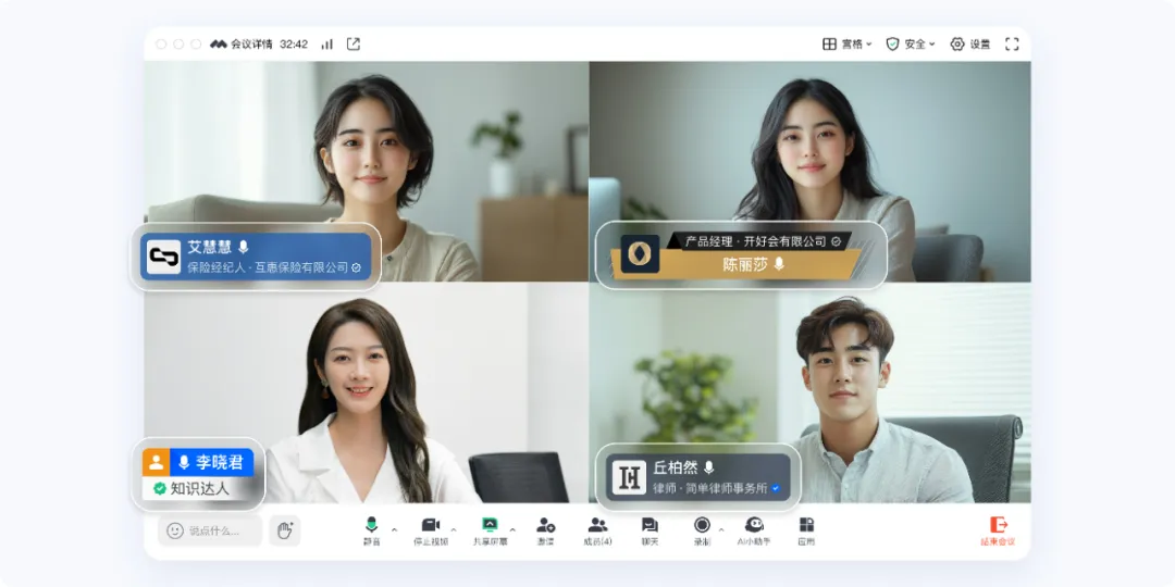 在沟通时,专业版、商业版、企业版用户可以展示在您的个人资料卡、会议水牌中,丰富的样式能够匹配到各种使用场景,打造专属于您的“数字名片”,展示专业形象,提升外部合作伙伴信任感。